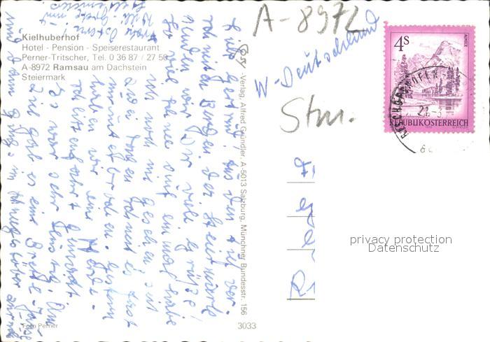 72495880 alte Postkarte Ramsau Dachstein Steiermark Kielhuberhof Hotel Pension postalisch gelaufen Erhaltung siehe scans KatCode: 11390222061236