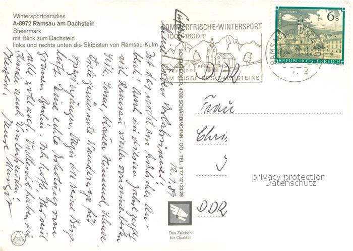 73628989 alte Postkarte Ramsau Dachstein Steiermark Kirche mit Dachstein Skipisten Pferdeschlitten postalisch gelaufen Erhaltung siehe scans [WerneD78] KatCode: 11390222061236
