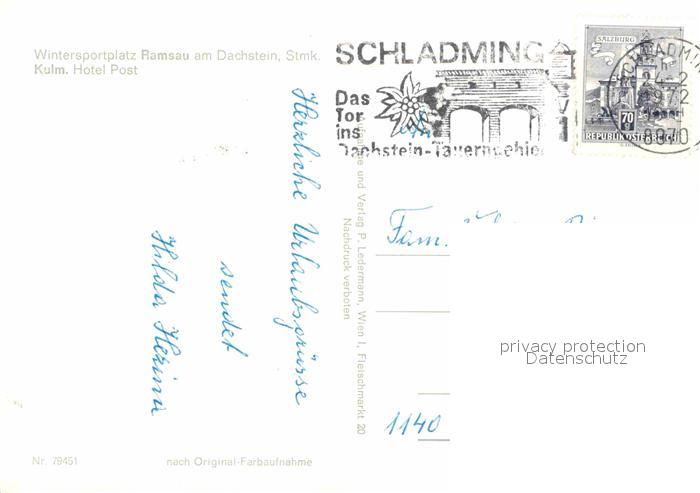 12603926 alte Postkarte Ramsau Dachstein Steiermark Kulm Hotel Post postalisch gelaufen Erhaltung siehe scans [LiesaD40] KatCode: 11390222061236