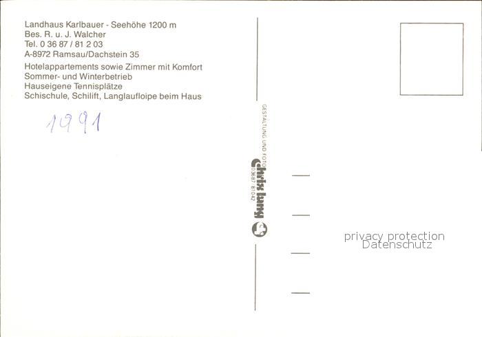 72240291 Ramsau Dachstein Steiermark Landhaus Karlbauer postalisch nicht gelaufen Erhaltung siehe scans KatCode: 11390222061236