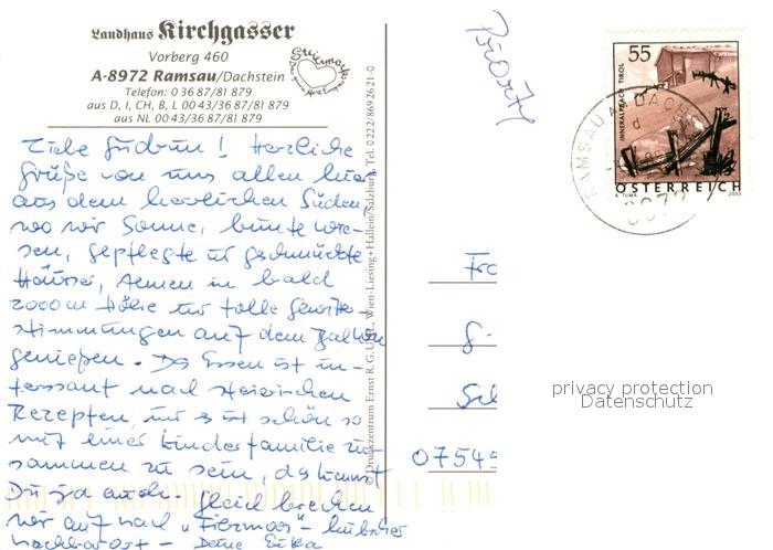 73338943 alte Postkarte Ramsau Dachstein Steiermark Landhaus Kirchgasser postalisch gelaufen Erhaltung siehe scans [LiesaD40] KatCode: 11390222061236