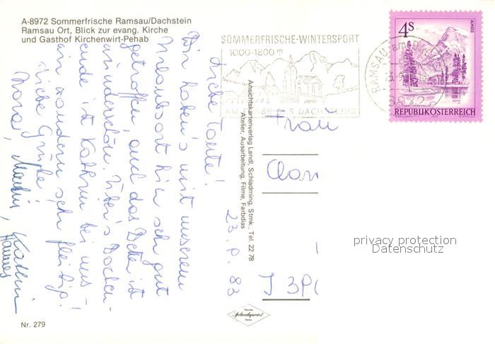 73339554 alte Postkarte Ramsau Dachstein Steiermark Ortsmotiv mit Kirche Gasthof Kirchenwirt Pehab Sommerfrische postalisch gelaufen Erhaltung siehe scans [FriedD77] KatCode: 11390222061236