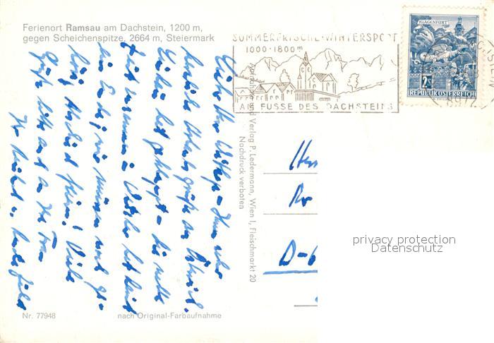 73249181 alte Postkarte Ramsau Dachstein Steiermark Panorama Blick gegen Scheichenspitze Dachsteingebirge postalisch gelaufen Erhaltung siehe scans [FriedD77] KatCode: 11390222061236