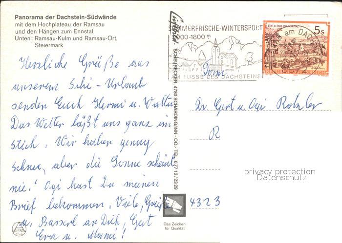 72532459 alte Postkarte Ramsau Dachstein Steiermark Panorama der Dachstein Suedwaende postalisch gelaufen Erhaltung siehe scans [AndreD76 kt113box] KatCode: 11390222061236