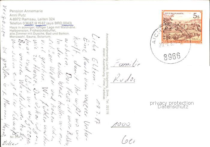 71822172 alte Postkarte Ramsau Dachstein Steiermark Pension Annemarie postalisch gelaufen Erhaltung siehe scans KatCode: 11390222061236