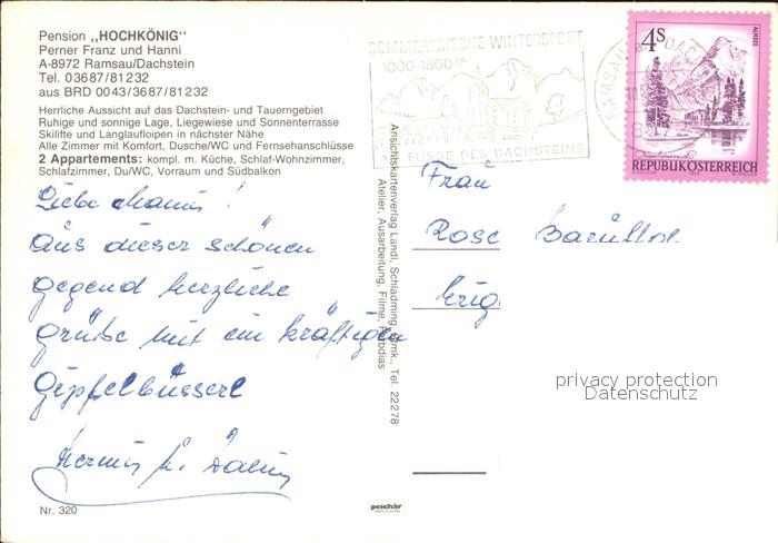 72531411 alte Postkarte Ramsau Dachstein Steiermark Pension Hochkoenig Aussenansicht Gaststube Zimmer postalisch gelaufen Erhaltung siehe scans [AndreD76 kt113box] KatCode: 11390222061236