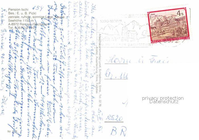 72820946 alte Postkarte Ramsau Dachstein Steiermark Pension Ischi Winterpanorama Dachsteingebirge postalisch gelaufen Erhaltung siehe scans [FriedD77] KatCode: 11390222061236