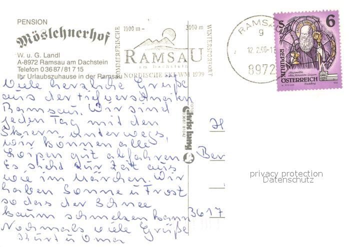 73643421 alte Postkarte Ramsau Dachstein Steiermark Pension Moeslehnerhof Gaststube postalisch gelaufen Erhaltung siehe scans [WerneD78] KatCode: 11390222061236