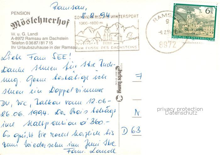 73245568 alte Postkarte Ramsau Dachstein Steiermark Pension Moeslehnerhof postalisch gelaufen Erhaltung siehe scans [LiesaD40] KatCode: 11390222061236