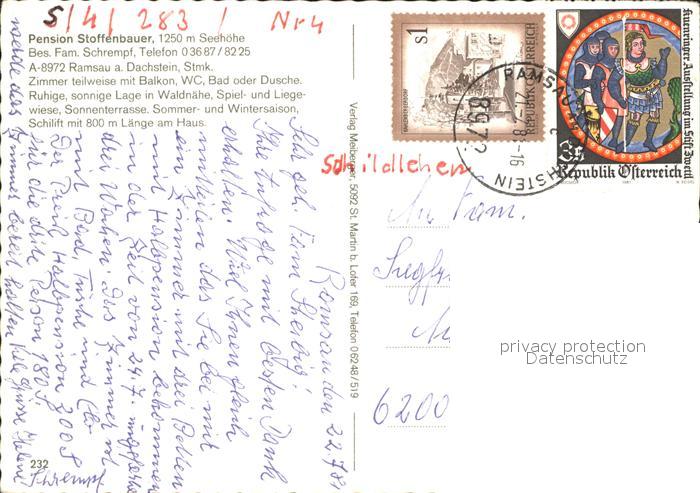 11931863 alte Postkarte Ramsau Dachstein Steiermark Pension Stoffenbauer Gaststube postalisch gelaufen Erhaltung siehe scans KatCode: 11390222061236