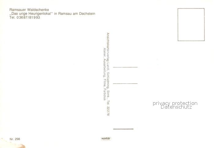 73013041 Ramsau Dachstein Steiermark Ramsauer Waldschenke postalisch nicht gelaufen Erhaltung siehe scans [NatalD47] KatCode: 11390222061236