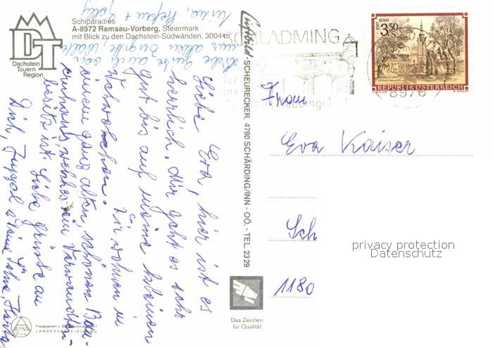 72849129 alte Postkarte Ramsau Dachstein Steiermark Skiparadies West postalisch gelaufen Erhaltung siehe scans [AndreD76] KatCode: 11390222061236