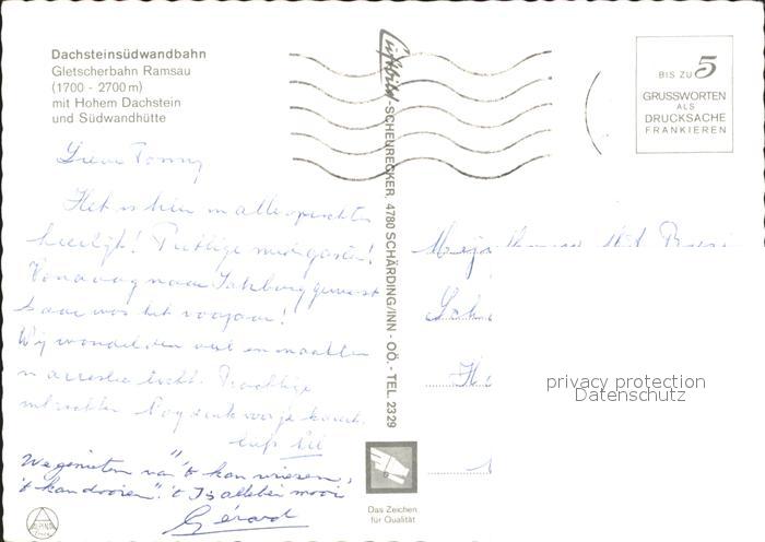 71899434 alte Postkarte Ramsau Dachstein Steiermark Sonnwendbahn Seilbahn Hoher Dachstein Suedwandhuette postalisch gelaufen Erhaltung siehe scans KatCode: 11390222061236