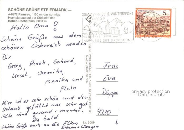 72437558 alte Postkarte Ramsau Dachstein Steiermark Stadtansicht postalisch gelaufen Erhaltung siehe scans KatCode: 11390222061236