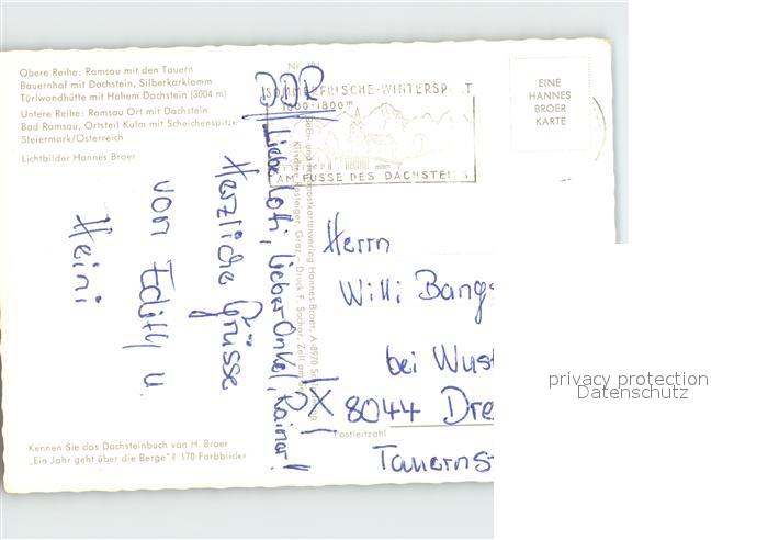 72362300 alte Postkarte Ramsau Dachstein Steiermark Tauern Silberklamm Tuerlwandhuette postalisch gelaufen Erhaltung siehe scans KatCode: 11390222061236