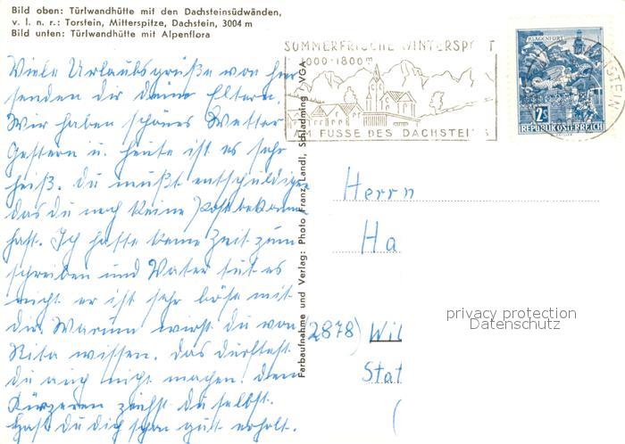 73526786 alte Postkarte Ramsau Dachstein Steiermark Tuerlwandhuette Dachsteinsuedwaende Alpenflora postalisch gelaufen Erhaltung siehe scans [FriedD77] KatCode: 11390222061236