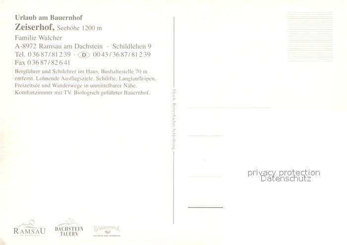 73070810 Ramsau Dachstein Steiermark Urlaub am Bauernhof Zeiserhof Dachsteingebirge postalisch nicht gelaufen Erhaltung siehe scans [FriedD77] KatCode: 11390222061236
