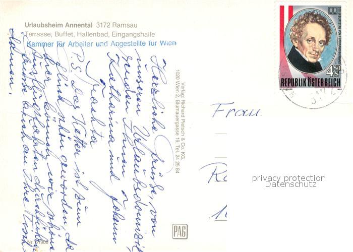 73338028 alte Postkarte Ramsau Dachstein Steiermark Urlaubsheim Annental Bar Terrasse Hallenbad Treppe postalisch gelaufen Erhaltung siehe scans [WerneD78] KatCode: 11390222061236