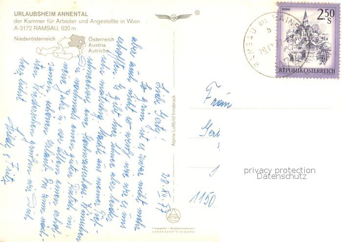 73635719 alte Postkarte Ramsau Dachstein Steiermark Urlaubsheim Annental Fliegeraufnahme postalisch gelaufen Erhaltung siehe scans [WerneD78] KatCode: 11390222061236