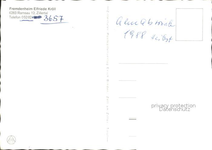 72392570 Ramsau Zillertal Fremdenheim Elfriede Kroell postalisch nicht gelaufen Erhaltung siehe scans KatCode: 11390335070922