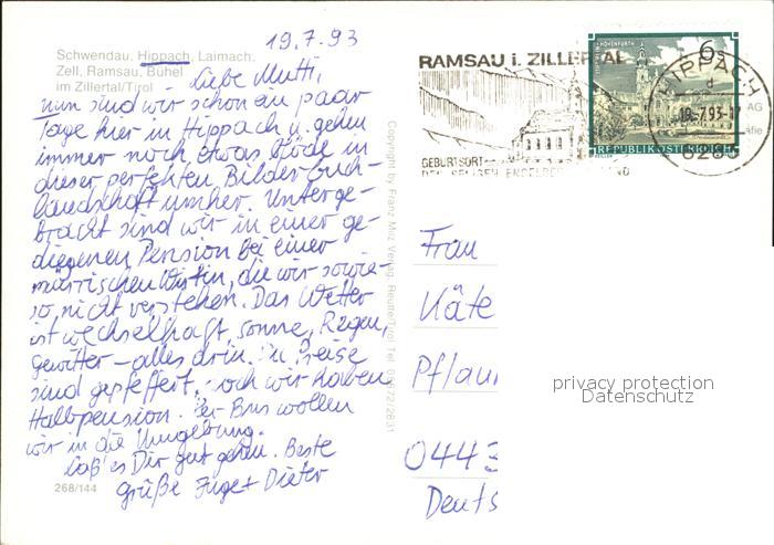72154833 alte Postkarte Ramsau Zillertal Panorama mit Schwendau Hippach Laimach Zell Buehel postalisch gelaufen KatCode: 11390335070922