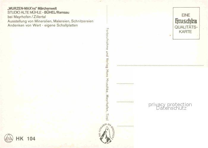 72872245 Ramsau Zillertal Wurzenmax Maerchenwelt Alte Muehle Holzschnitzerei postalisch nicht gelaufen Erhaltung siehe scans [FriedD77] KatCode: 11390335070922
