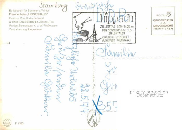 72832146 alte Postkarte Ramsberg Zillertal Fremdenheim Heisenhaus postalisch gelaufen Erhaltung siehe scans [LiesaD40] KatCode: 11390335070922