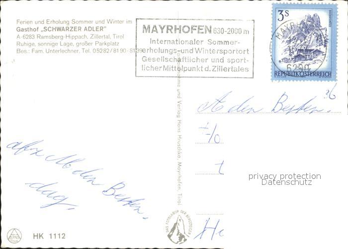 72504182 alte Postkarte Ramsberg Zillertal Gasthof Schwarzer Adler postalisch gelaufen Erhaltung siehe scans KatCode: 11390335070922