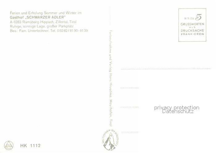 12740363 Ramsberg Zillertal Hippach Gasthof Schwarzer Adler postalisch nicht gelaufen Erhaltung siehe scans [KathaD81] KatCode: 11390335070922