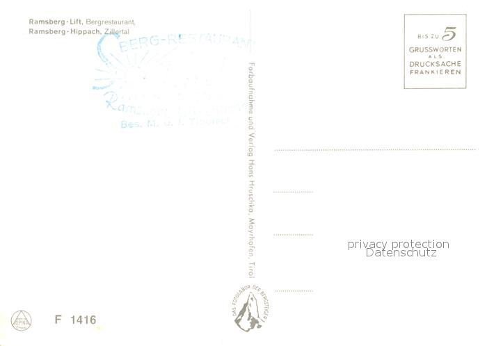 73046423 Ramsberg Zillertal Hippach Lift Bergrestaurant postalisch nicht gelaufen Erhaltung siehe scans [KathaD81] KatCode: 11390335070922
