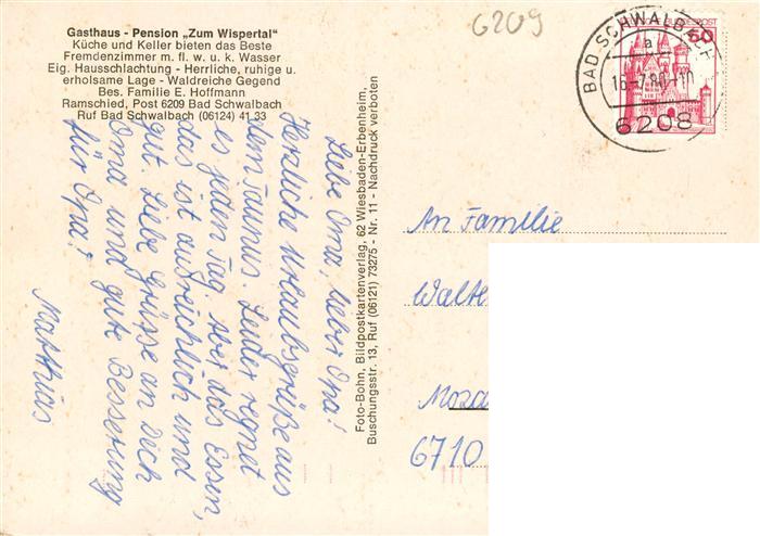 73936587 alte Postkarte Ramschied Gasthaus Pension Zum Wispertal Gastraum Bar Pavillon Waldpartie postalisch gelaufen Erhaltung siehe scans [FriedD77] KatCode: 11110006439002