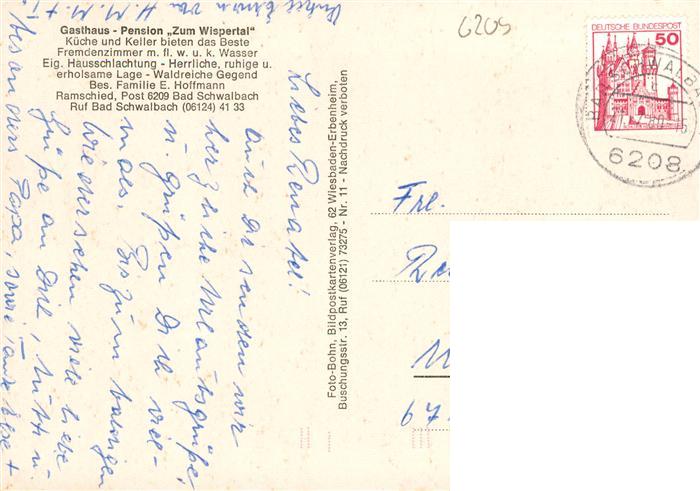 73936586 alte Postkarte Ramschied Gasthaus Pension Zum Wispertal Gastraum Bar Pavillon Waldpartie postalisch gelaufen Erhaltung siehe scans [FriedD77] KatCode: 11110006439002