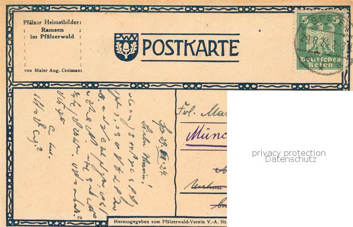 73803506 alte Postkarte Ramsen Pfalz Ortsmotiv Kuenstlerkarte postalisch gelaufen Erhaltung siehe scans [FriedD77] KatCode: 11110007333060