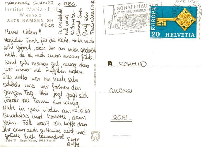 13896910 alte Postkarte Ramsen SH Panorama Institut Maria Hill Fliegeraufnahme postalisch gelaufen Erhaltung siehe scans [FriedD77] KatCode: 11470160470384