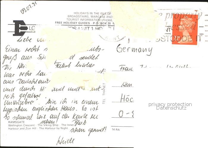old postcard Ramsgate Hafen postalisch gelaufen Erhaltung siehe scans