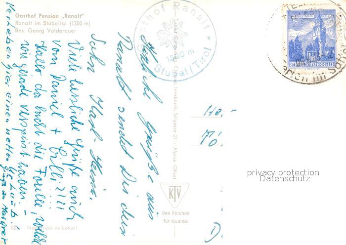 13237366 alte Postkarte Ranalt Gasthof Pension Ranalt im Stubaital postalisch gelaufen Erhaltung siehe scans [FriedD77] KatCode: 11390332070334