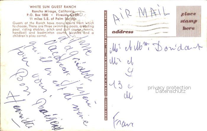 71953348 old postcard Rancho Mirage White Sun Guest Ranch postalisch gelaufen Erhaltung siehe scans KatCode: 14140050000000
