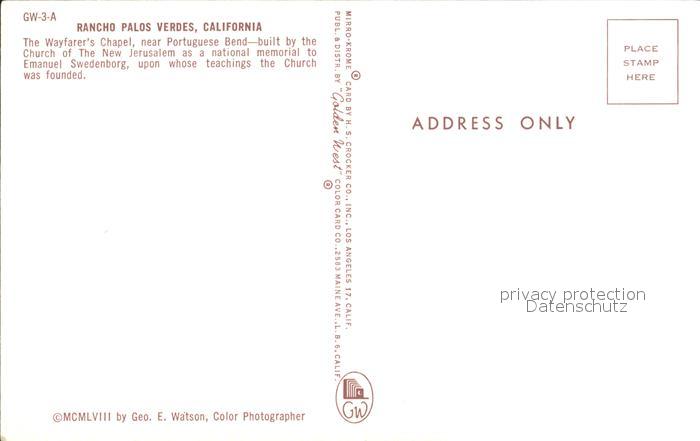 72306136 Rancho Palos Verdes Wayfarers Chapel postalisch nicht gelaufen Erhaltung siehe scans KatCode: 14140050000000