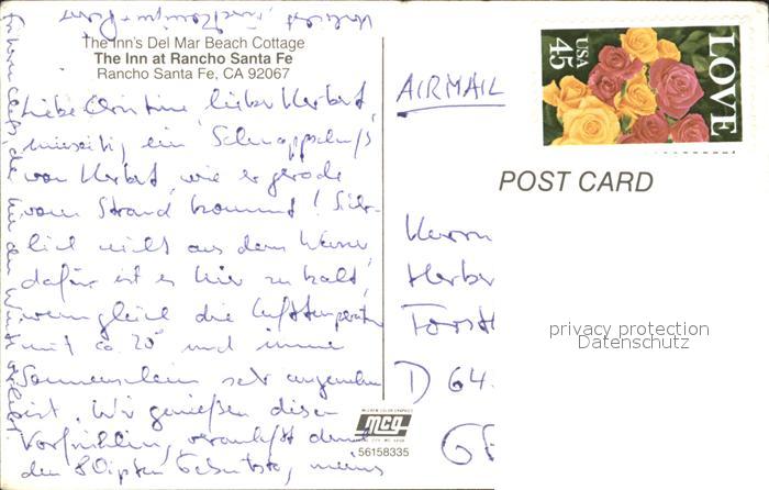 71964864 old postcard Rancho Santa Fe The Inn at Rancho Santa Fe postalisch gelaufen Erhaltung siehe scans KatCode: 14140050000000