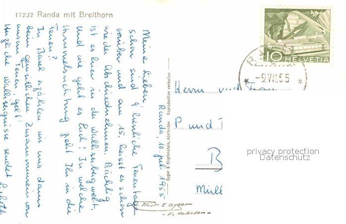 12736810 alte Postkarte Randa Blick zum Breithorn postalisch gelaufen Erhaltung siehe scans [AndreD76] KatCode: 11470230750732