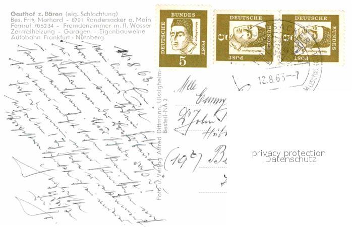 72647214 alte Postkarte Randersacker Gasthof zum Baeren Tor Kirche postalisch gelaufen Erhaltung siehe scans [NatalD47] KatCode: 11110009679175