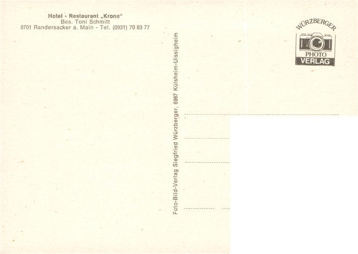 73894795 Randersacker Hotel Restaurant Krone Gastraeume postalisch nicht gelaufen Erhaltung siehe scans [FriedD77] KatCode: 11110009679175