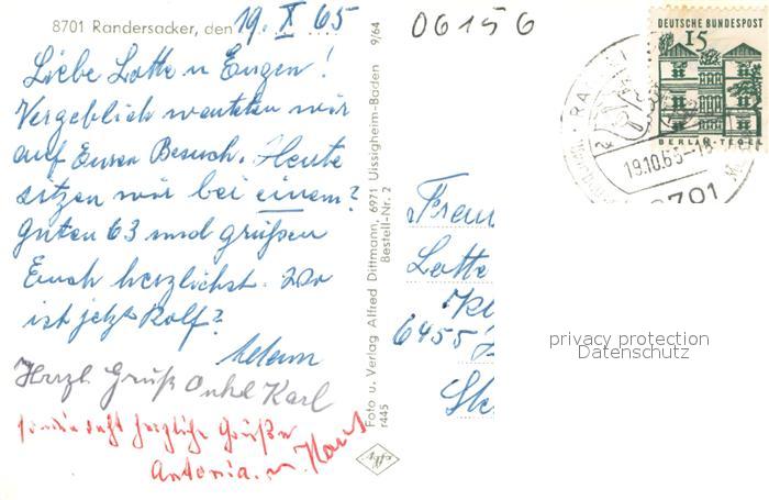 33657768 alte Postkarte Randersacker Kirche Panorama Waldweg postalisch gelaufen Erhaltung siehe scans [WerneD78] KatCode: 11110009679175