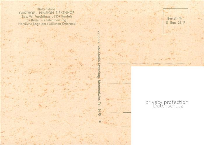 73641190 Ranfels Gasthof Pension Birkenhof Birkenstube postalisch nicht gelaufen Erhaltung siehe scans [WerneD78] KatCode: 11110009272152