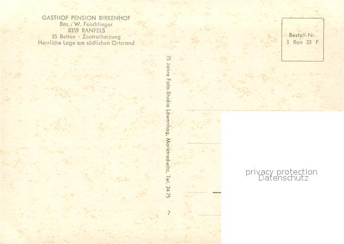 73165631 Ranfels Gasthof Pension Birkenhof postalisch nicht gelaufen Erhaltung siehe scans [WerneD78] KatCode: 11110009272152
