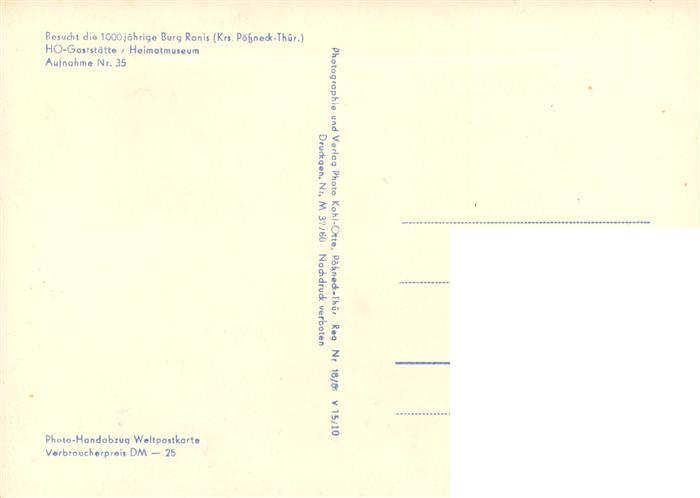 73901897 Ranis 1000jaehrige Burg Ranis HO-Gaststaette Heimatmuseum postalisch nicht gelaufen Erhaltung siehe scans [FriedD77] KatCode: 11110016075088