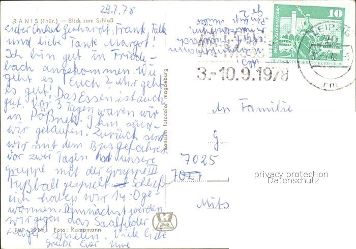 72040271 alte Postkarte Ranis Blick zum Schloss postalisch gelaufen Erhaltung siehe scans KatCode: 11110016075088