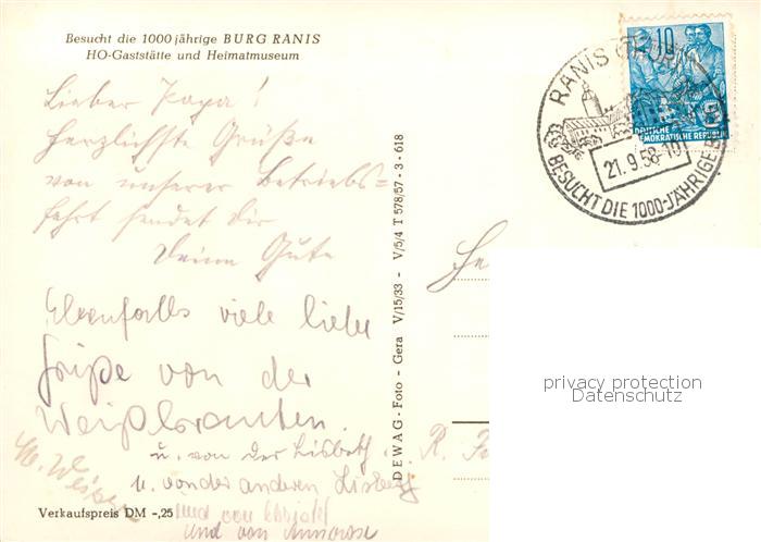 73830520 alte Postkarte Ranis Burg Ranis HOG und Heimatmuseum postalisch gelaufen Erhaltung siehe scans [WerneD78] KatCode: 11110016075088