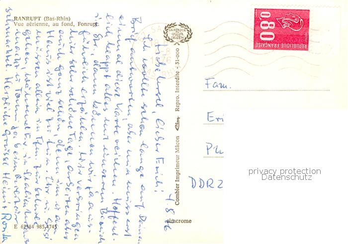 13837994 Ranrupt Vue aérienne au fond Fonrupt postalisch gelaufen Fliegeraufnahme Erhaltung siehe scans [FriedD77] Fliegeraufnahme carte postale Frie Katcode 11170067367384