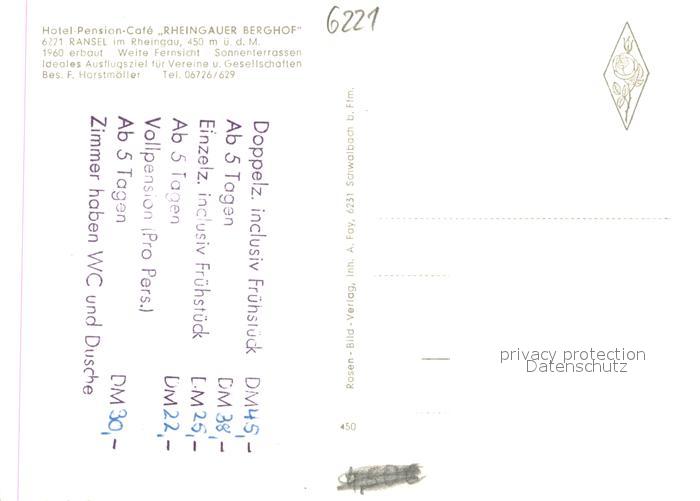 73697237 Ransel Hotel Pension Rheingauer Berghof und Umgebung postalisch nicht gelaufen Erhaltung siehe scans [FriedD77] KatCode: 11110006439010
